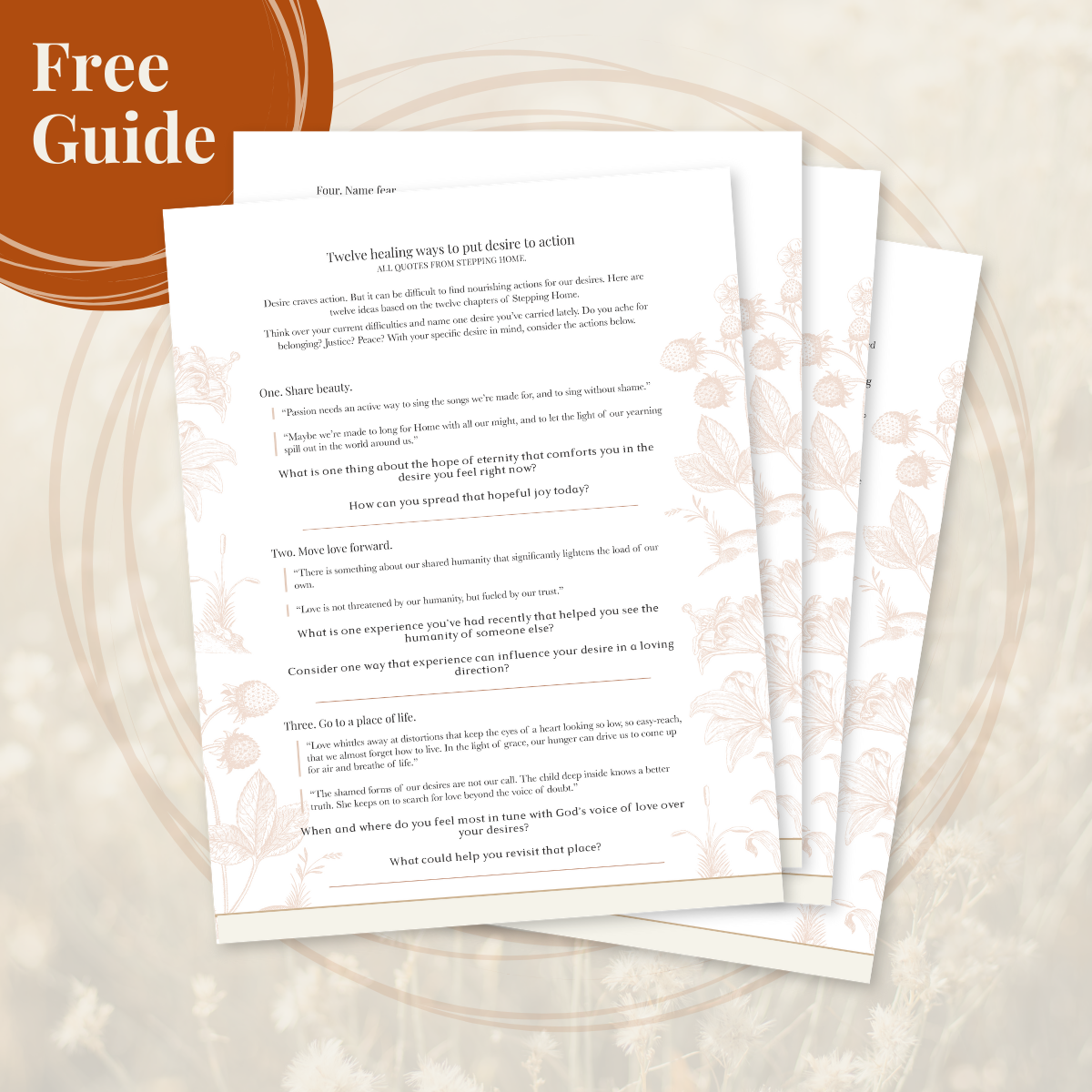 I'd love to connect with you by email where I share a bit more openly sometimes. As a thank you, you'll get my free guide—Twelve Healing Ways to Put Desire to Action, and I'll send monthly encouragement to your inbox. You can unsubscribe at any time.