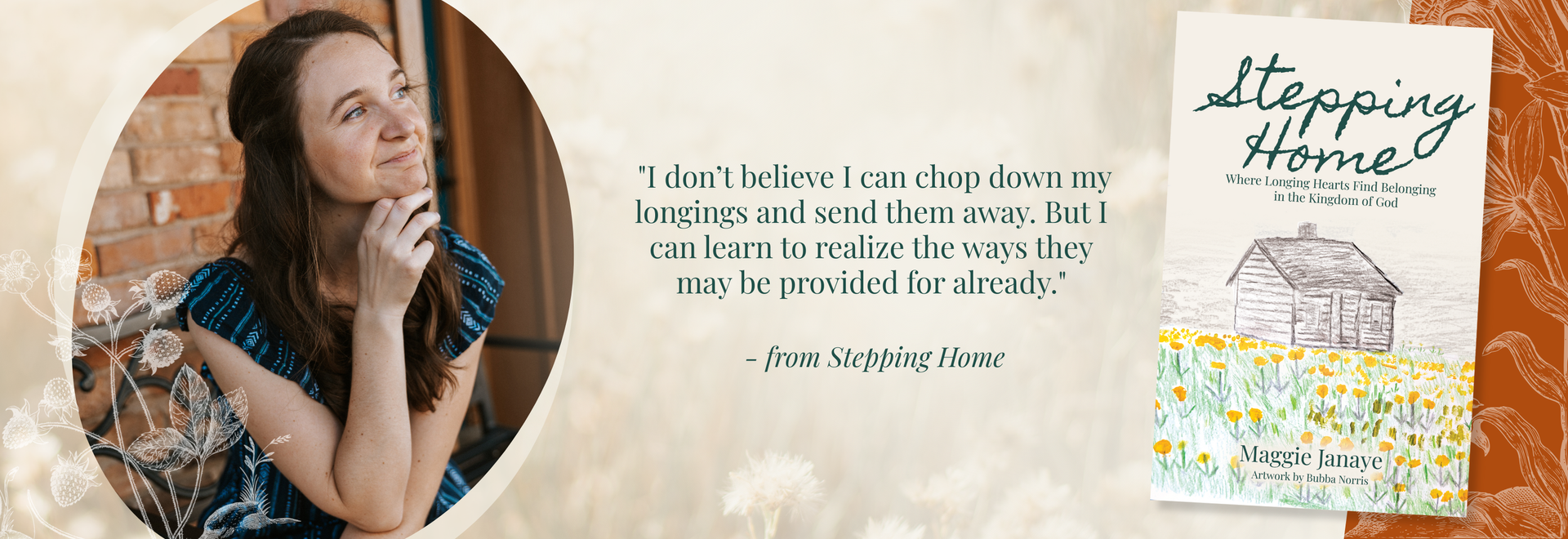 “Art can be seen as not hostile to faith, but as practice for it. Building the muscle of imagination makes us better fit to believe. And love, the central command of faith, requires enormous imagination, to understand the life, feelings, or needs of someone else” -Carey Wallace It’s because I’ve been deeply affected by good books that I enjoy making art on pages too. When we write, we engage imagination. When we read, we open to the experience of letting another soul’s imagination stir our own. Books are the most patient teachers. They never demand to be read. If you’ve had your fill for the day, they are content to rest in the corner for however long you need—whether a day, or a month. In a book, I step inside another’s mind, made available for me to enjoy or consider. But I can leave anytime I need to. I’m grateful for many people who chose to put their thoughts on paper, knowing they leave their readers with this gift. During the release of Stepping Home, I want to share some books I’ve been taught by—teachers I drew from while I wrote my book about belonging. I’ll share them in the order they appear in the endnotes of Stepping Home. The Weight of Glory and Other Addresses by C. S. Lewis To be honest, I’ve only read one of the other addresses, but “The Weight of Glory” is a must-read for any seeking soul. While originally shared as a sermon, it would never do for this to not be available in writing. I received this book as a birthday gift several years ago and savored every word of this sermon. Lewis puts language to desire in a way that soothes my fears, awakens my yearnings, clarifies my wants, and leaves me feeling free to let my heart come alive. Placemaker by Christie Purifoy I learned about Christie from an author I follow. Christie writes about trees and homes almost like they’re full of dreams—as if they are always open for us to help them bear a reflection of our perfect, eternal home. She leads her reader to see the physical places we share as tender invitations into the art of partnering with our Creator. Her love for magnolias and maples, and her soul-deep ache to tend well to the places that shelter her people, made me see life in our farmhouse home with new eyes. The Soul of Desire by Curt Thompson, MD I heard Curt Thompson interviewed on a podcast and needed to read his book. I read The Soul of Desire right after one of my biggest personal failures. It stirred my imagination for a hopeful future. Thompson explores the science behind our yearning humanity and our need for connection, and he considers it from a perspective of faith as well. His book gave me both scientific and biblical reasons to see my ever-searching heart, not as defective, but as beautifully made and capable of coming to trust and believe in the goodness God has in store. The Meaning of Marriage by Timothy Keller with Kathy Keller Nano and I did this study with a church small group. It’s a grounding, relatable guide that validates the human longing for companionship and takes great care in addressing the obstacles of attachment and commitment. What gave it the most value to me is how it stayed in tune with the desires of the reader and acknowledged our humanity with frankness. Marital conflict and sexual struggles were handled with candor and grace. It prompted good self-reflection. And it did a beautiful job of connecting the needs of marriage, in all aspects, with the work of Christ—both in laying Himself down for His bride, the church, and in submitting Himself to the Father. The Listening Life by Adam S. McHugh This is also a book I learned about from an author I follow. I’ve never read a better book about listening. Every time I read it, I remember how healing it feels to be listened to, and how powerful a gift we share when we choose to listen intentionally. McHugh walks his reader through the art of living life with a posture that holds space—to hear what lies beneath the surface of our lives and those around us. Whenever I return to McHugh’s words, I feel exposed in my need to listen, and also gently led to a richer place. Ideally, I’d like to read this book at least once a year to help myself remember. Sacred Rhythms by Ruth Haley Barton I read this as part of a course I took on contemplative spirituality. In a noisy world, Barton invites her reader to slow down on the inside and embrace rhythms of solitude and stillness. She helped me learn beautiful ways to savor and experience Scripture when I need a break from diagrams and intellectualism. She connects deeply with desire, encouraging her reader to know that the longing for more is valid and worth our deep attention. The Path of Loneliness by Elisabeth Elliot The summer after I turned eighteen, I ran across this book for sale at an event. The title drew me in because I felt deeply alone. I’ve read a few of Elisabeth Elliot’s books and this is my very favorite. While not every page resonates with me, this book as a whole reaches me at my core every time I read it. It comforts me, convicts me and leads me to embrace the gifts that lie along the path of lonely places. While a good bit of what she writes comes from her two experiences of being widowed, Elliot’s words are deeply applicable to any kind of lonely season. Dear White Peacemakers by Osheta Moore Osheta wrote this after George Floyd’s death, and lovingly addressed it to her white brothers and sisters in Christ. In a way, she speaks to Christians who want to help bring us away from racism as a culture, but would like to know more about what it feels like to be in someone else’s shoes. I ran across her book online and wanted to learn from her perspective. She dives deep into the art of balancing grit and grace in the desire for peace. I find so much in her words that helps me consider more deeply, from a biblical perspective, what it means to listen, to repent, to take accountability and to embrace ways that make for peace. Spiritu