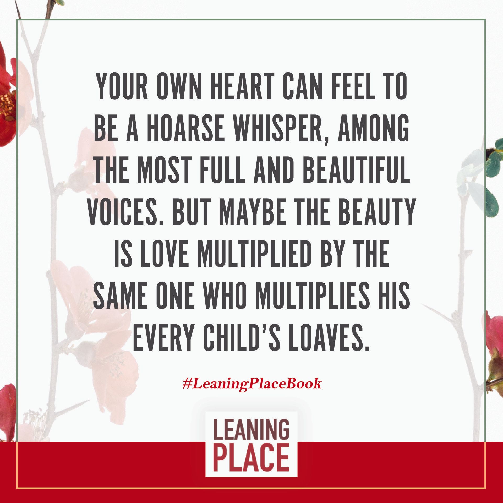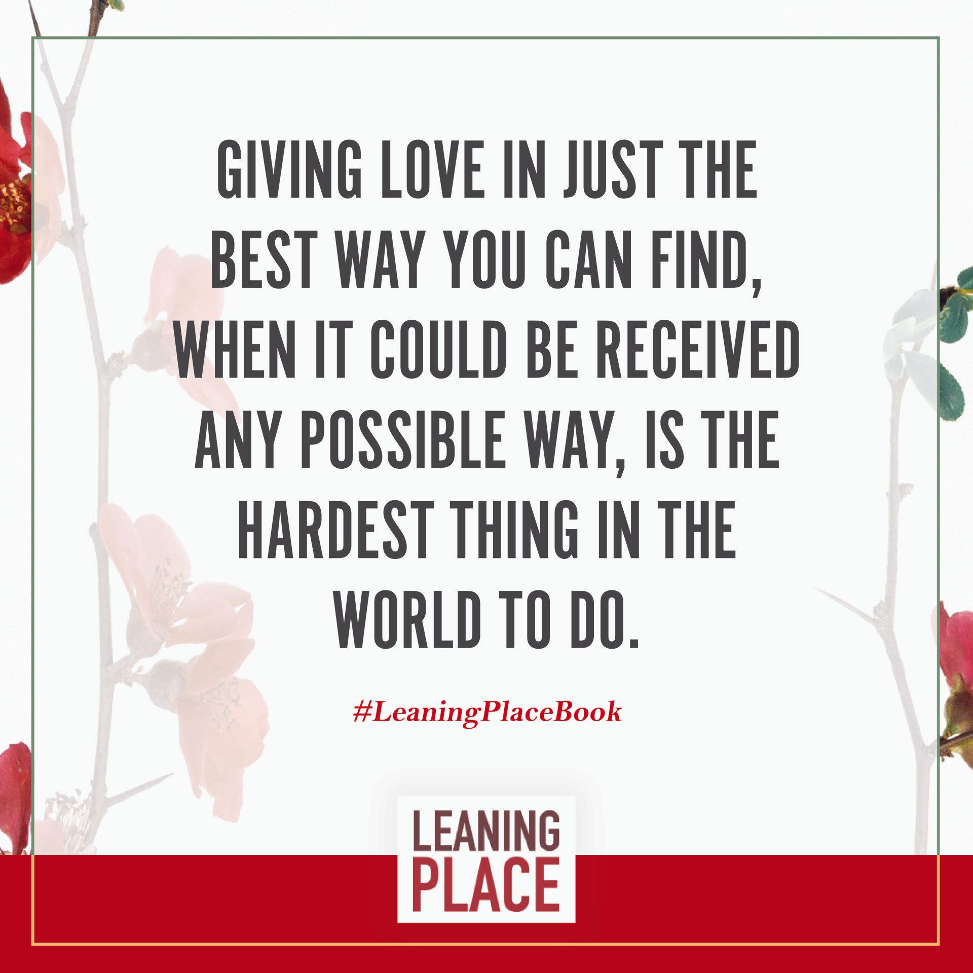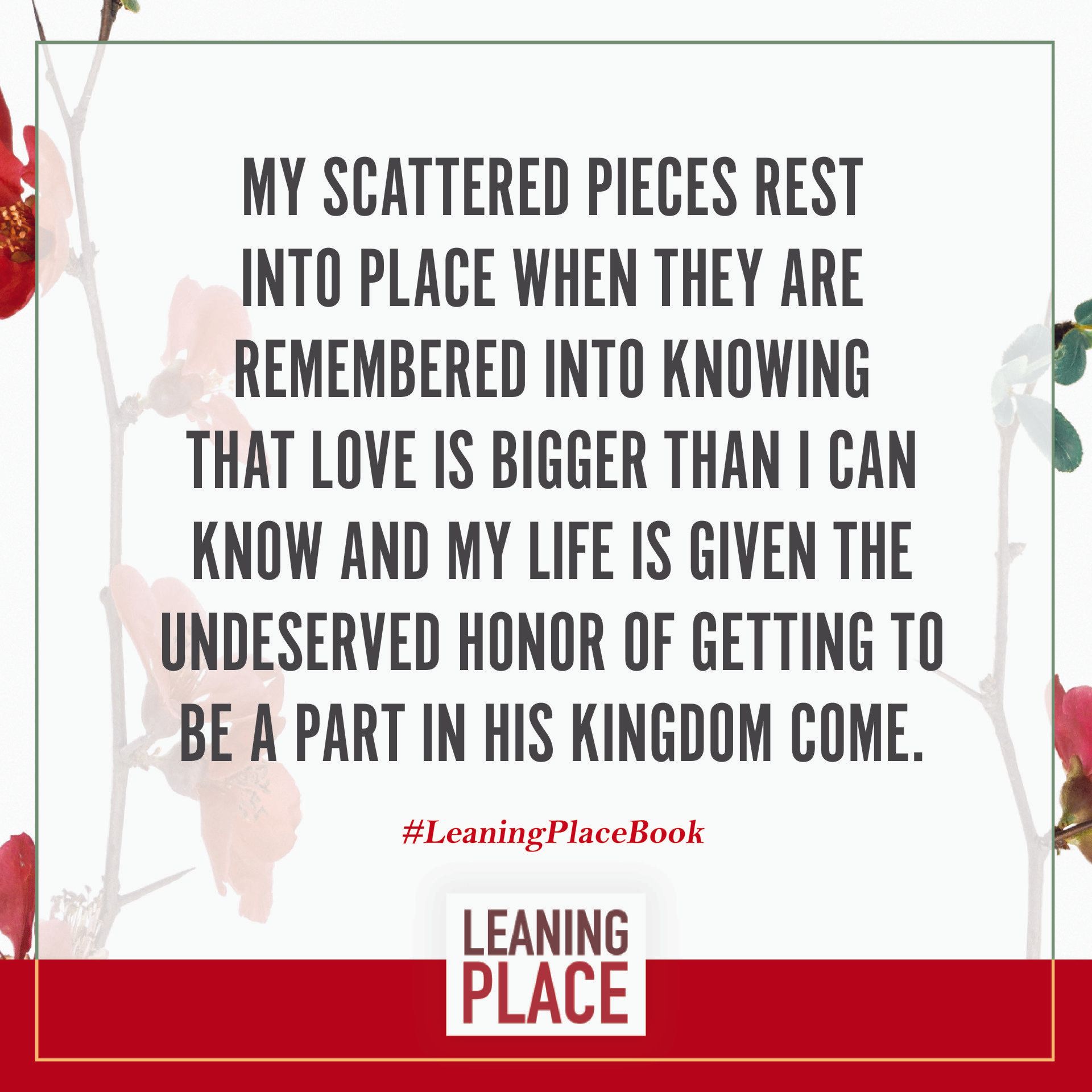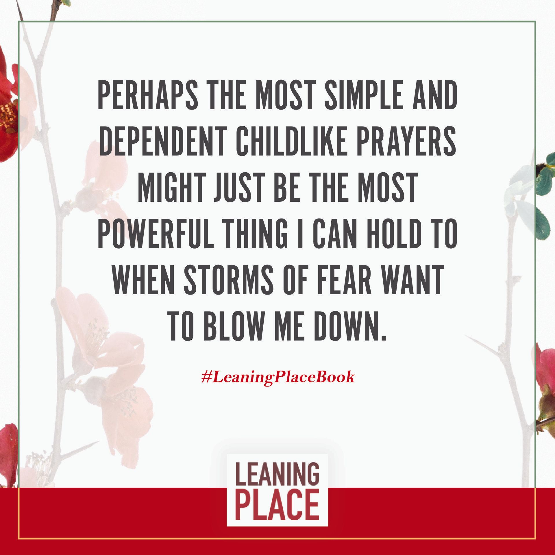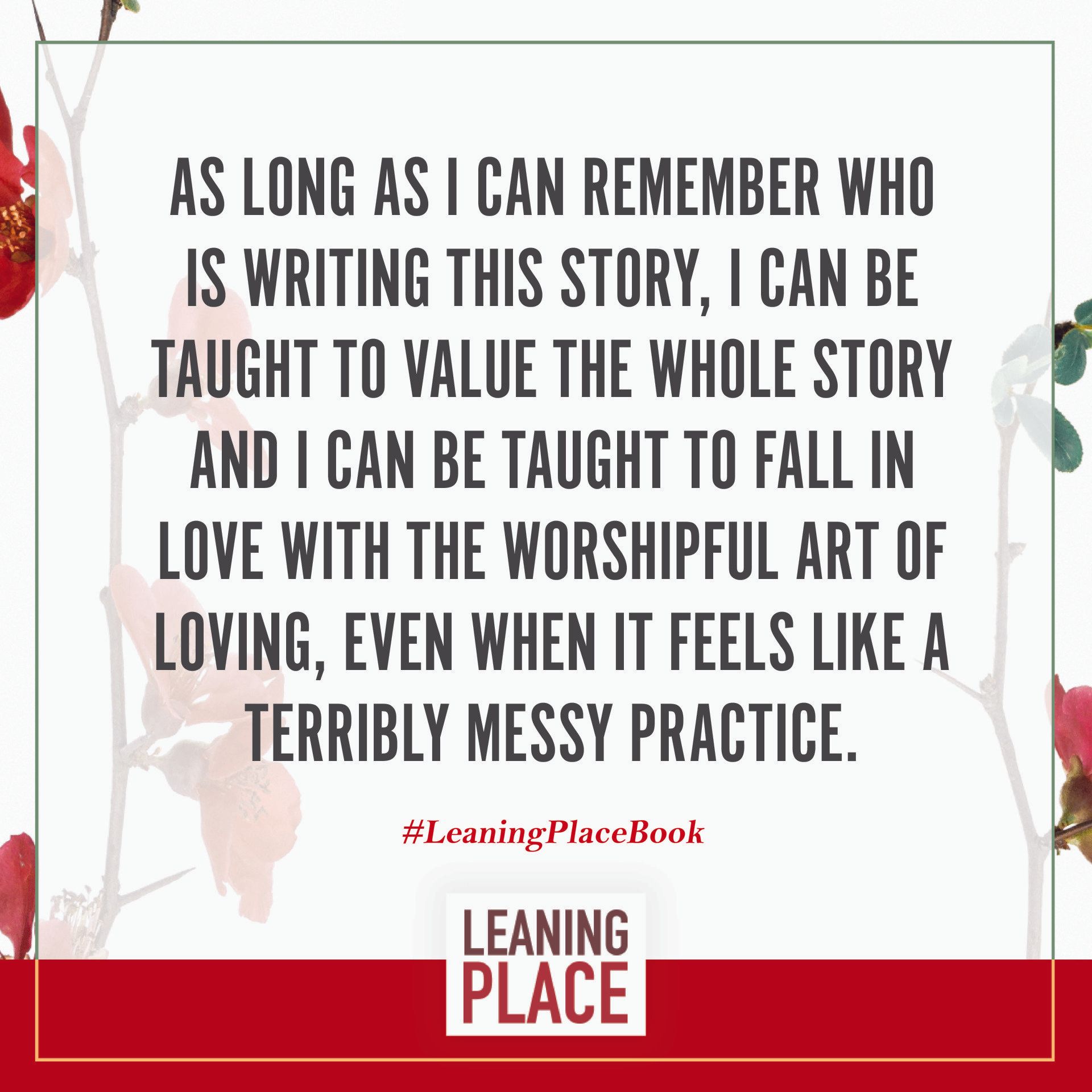 Here's a collection of selected pull quotes from the Leaning Place Book. Use them to share on your preferred social network. To share, click the quote you like, then at the top right of your screen, select the arrow to share.