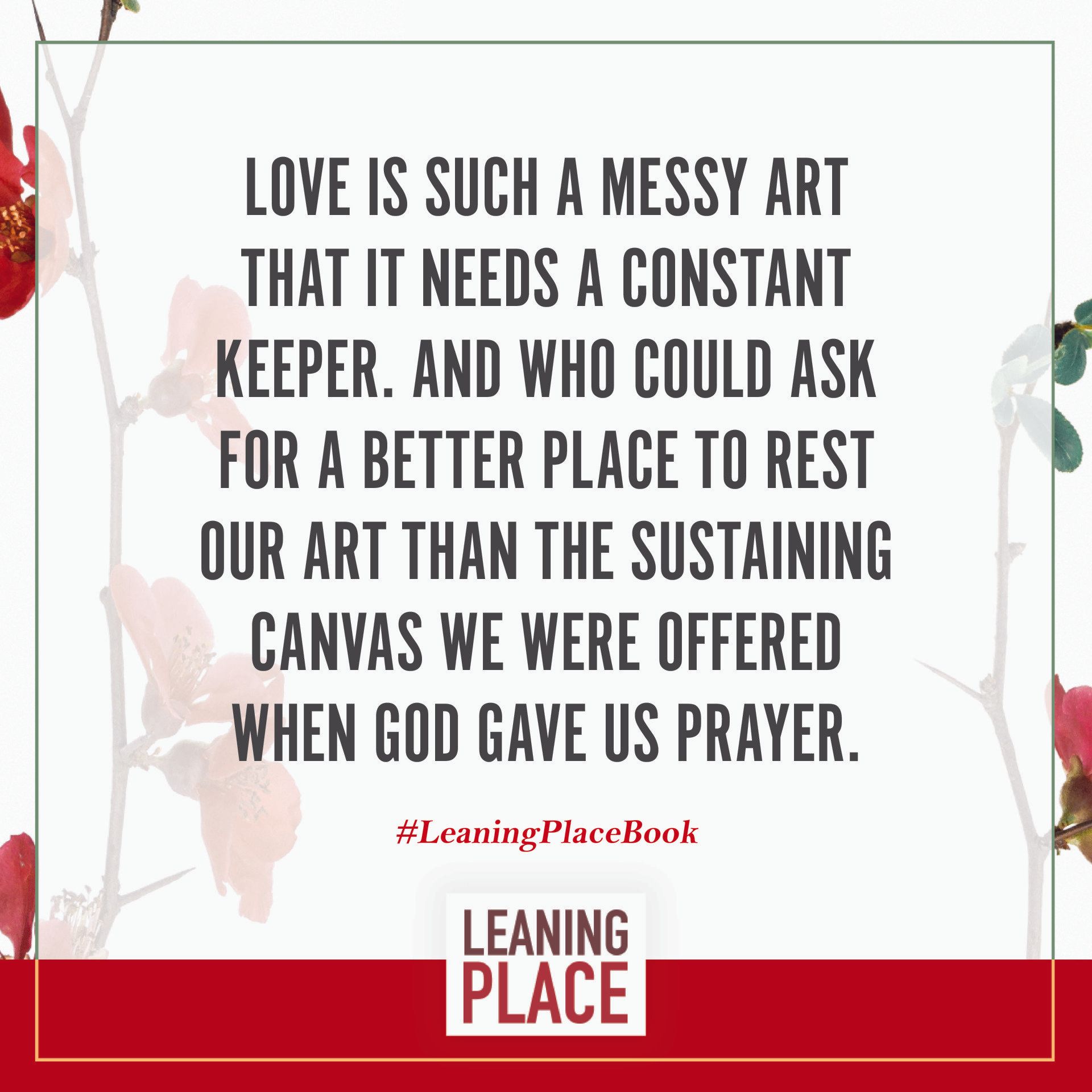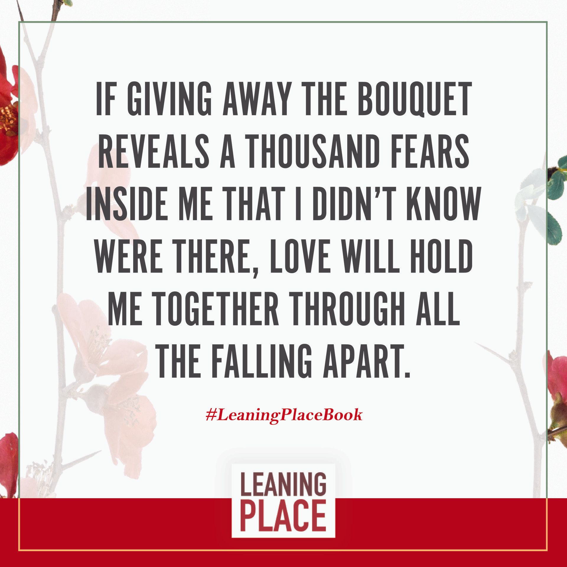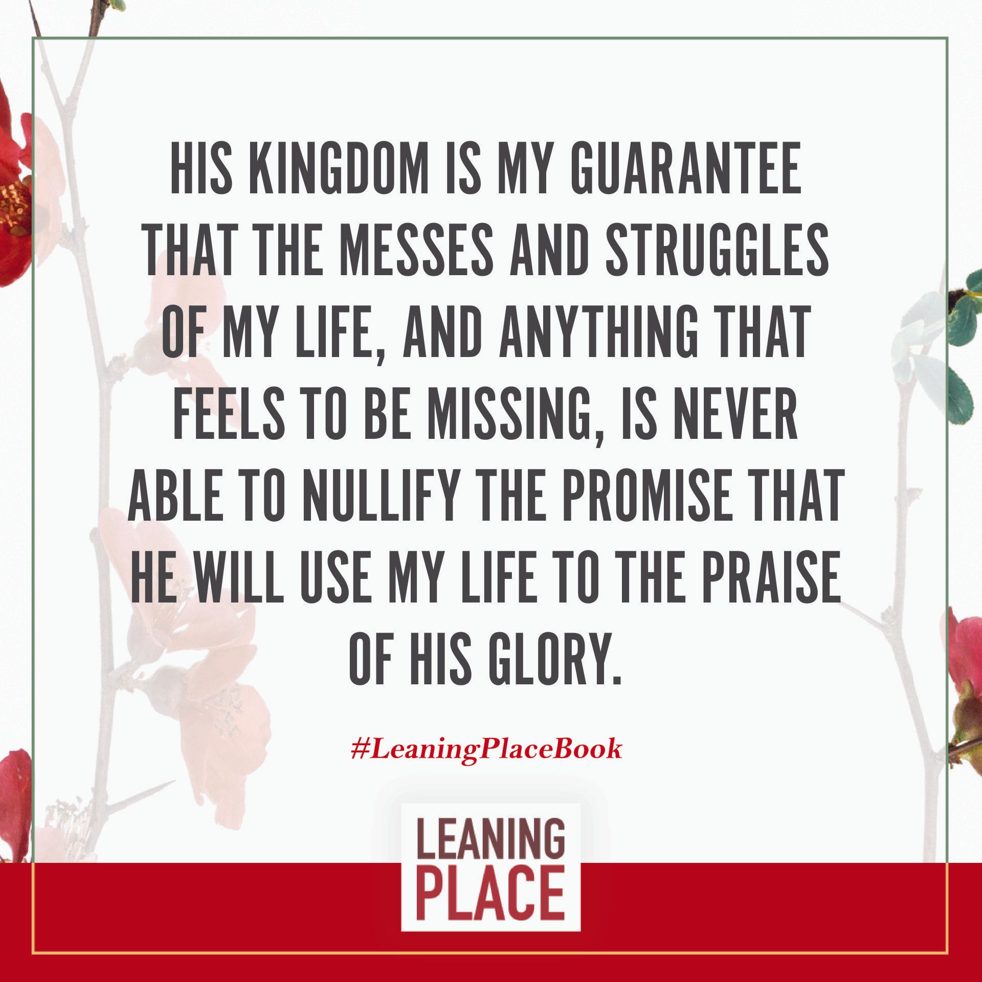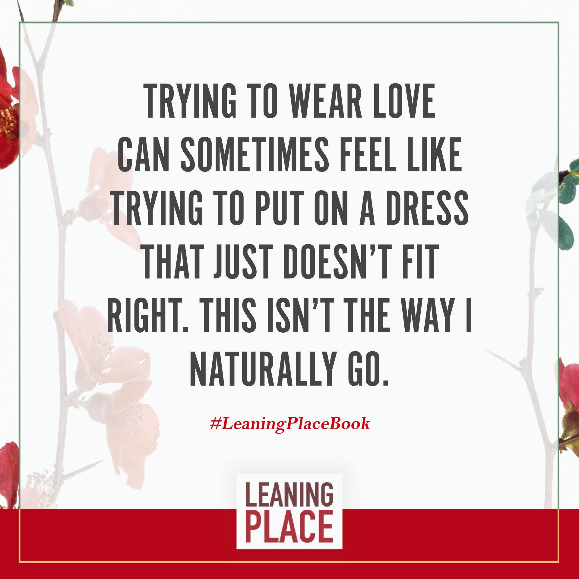 Here's a collection of selected pull quotes from the Leaning Place Book. Use them to share on your preferred social network. To share, click the quote you like, then at the top right of your screen, select the arrow to share.