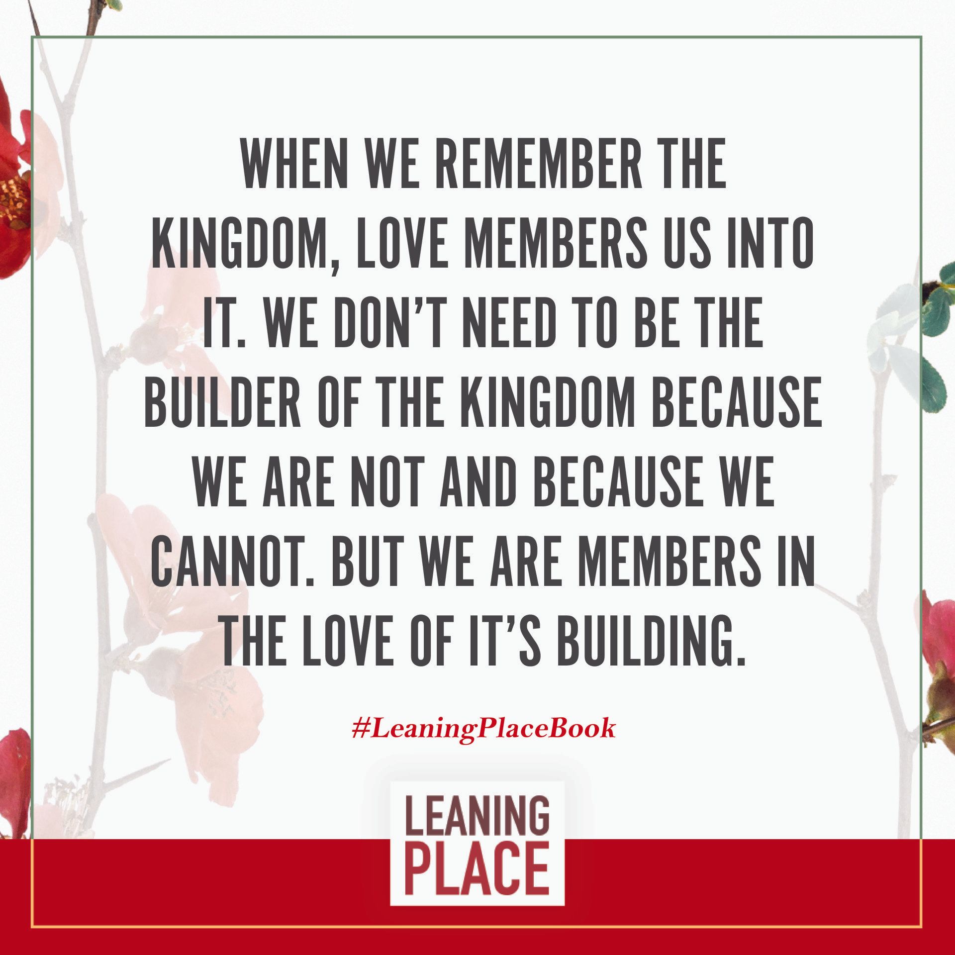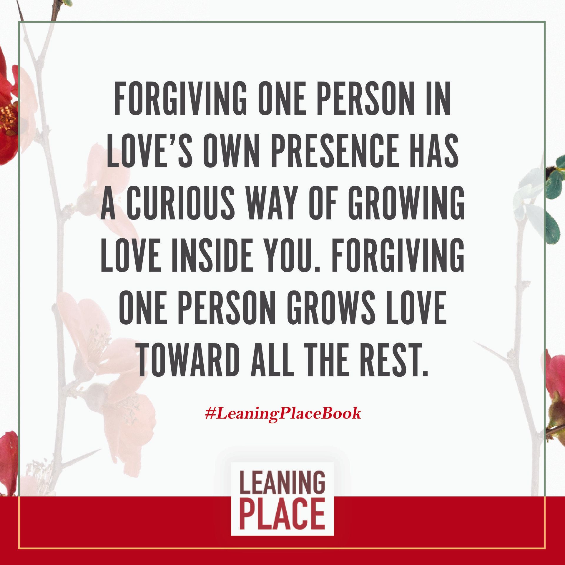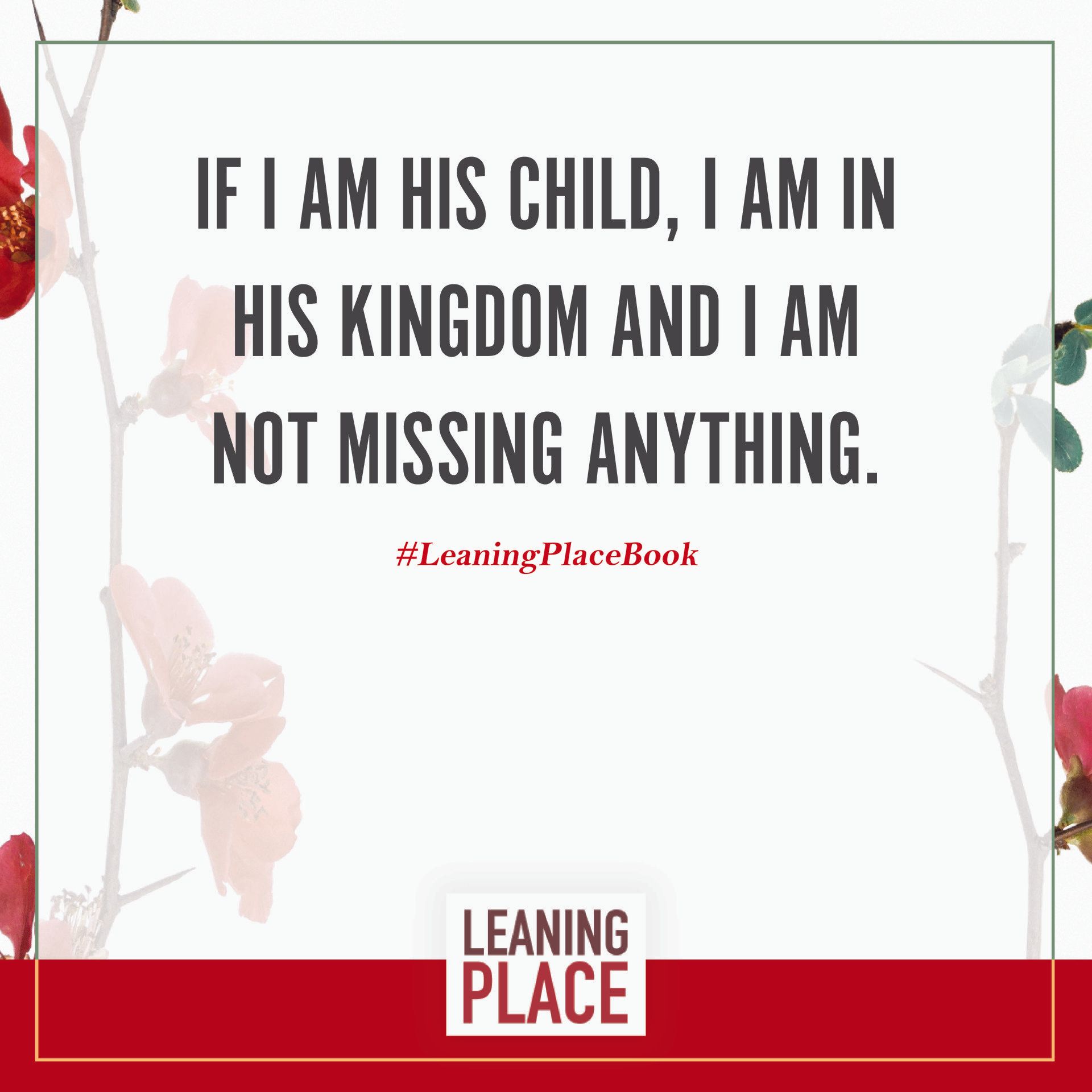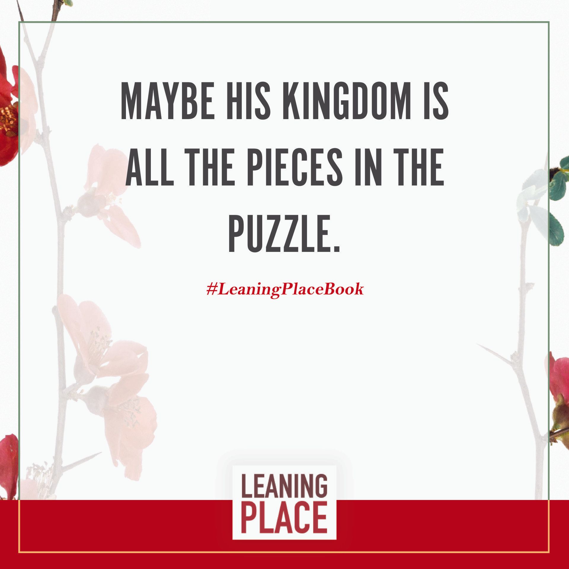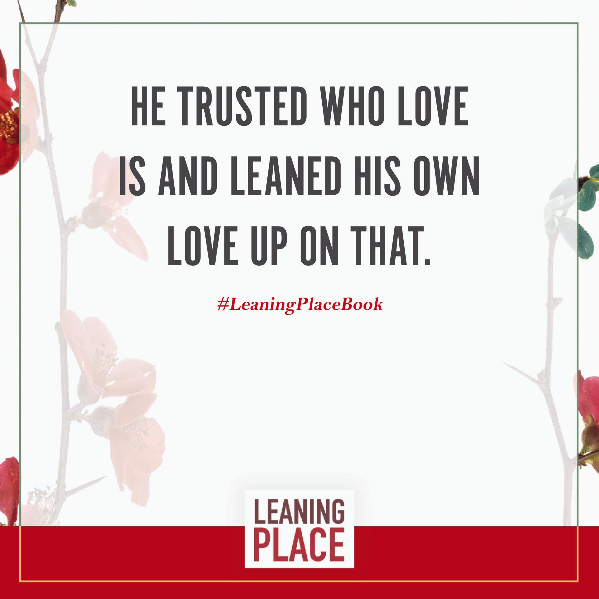 Here's a collection of selected pull quotes from the Leaning Place Book. Use them to share on your preferred social network. To share, click the quote you like, then at the top right of your screen, select the arrow to share.
