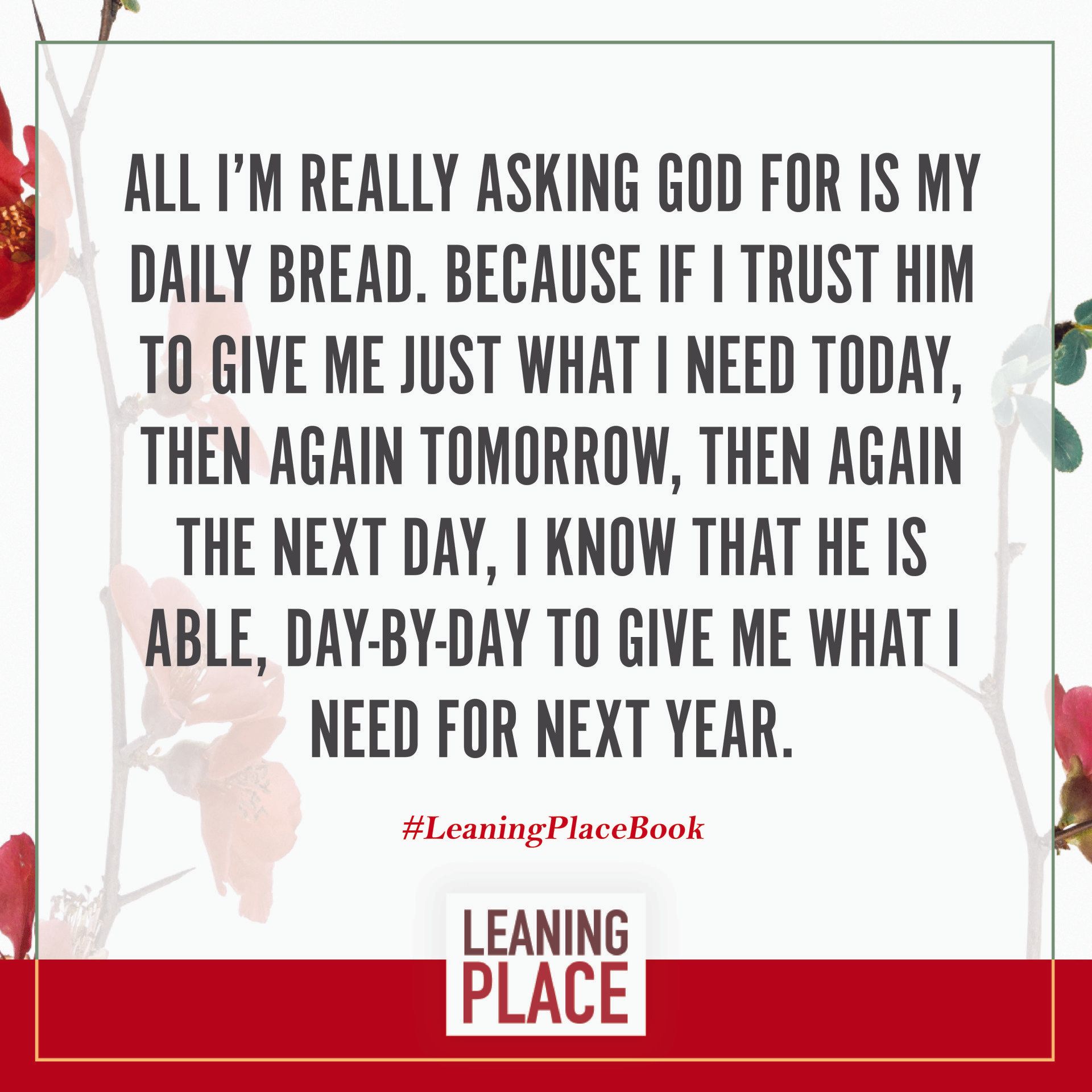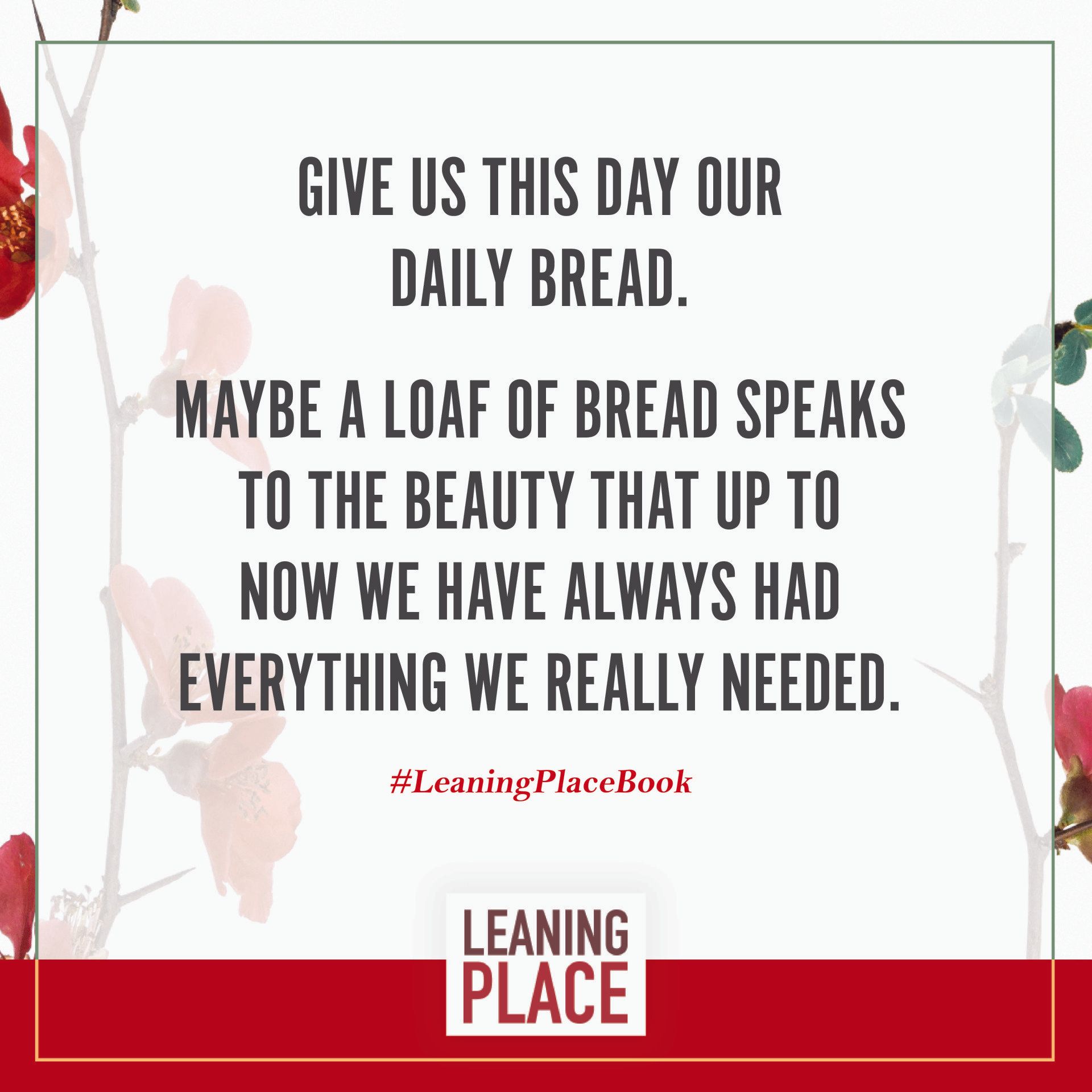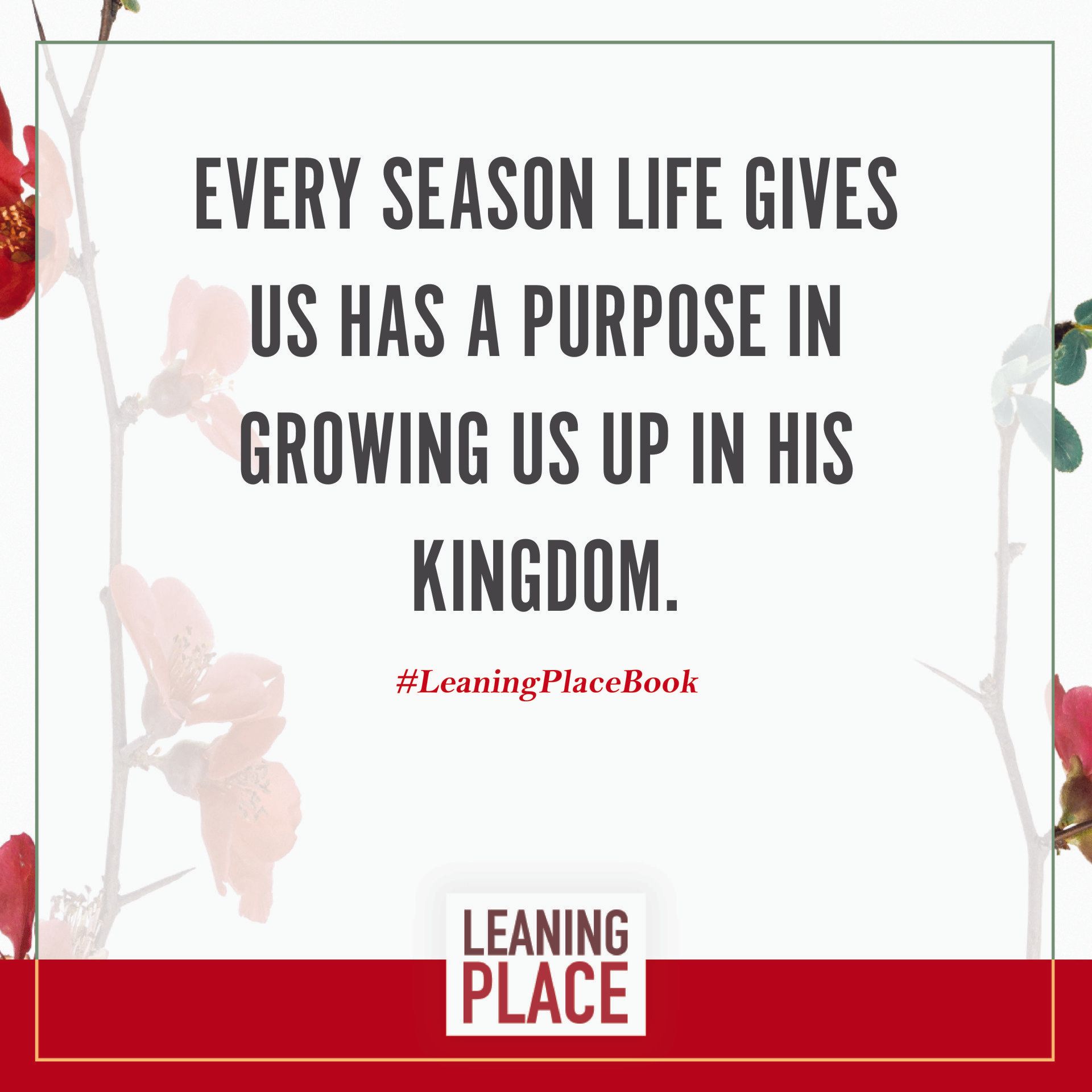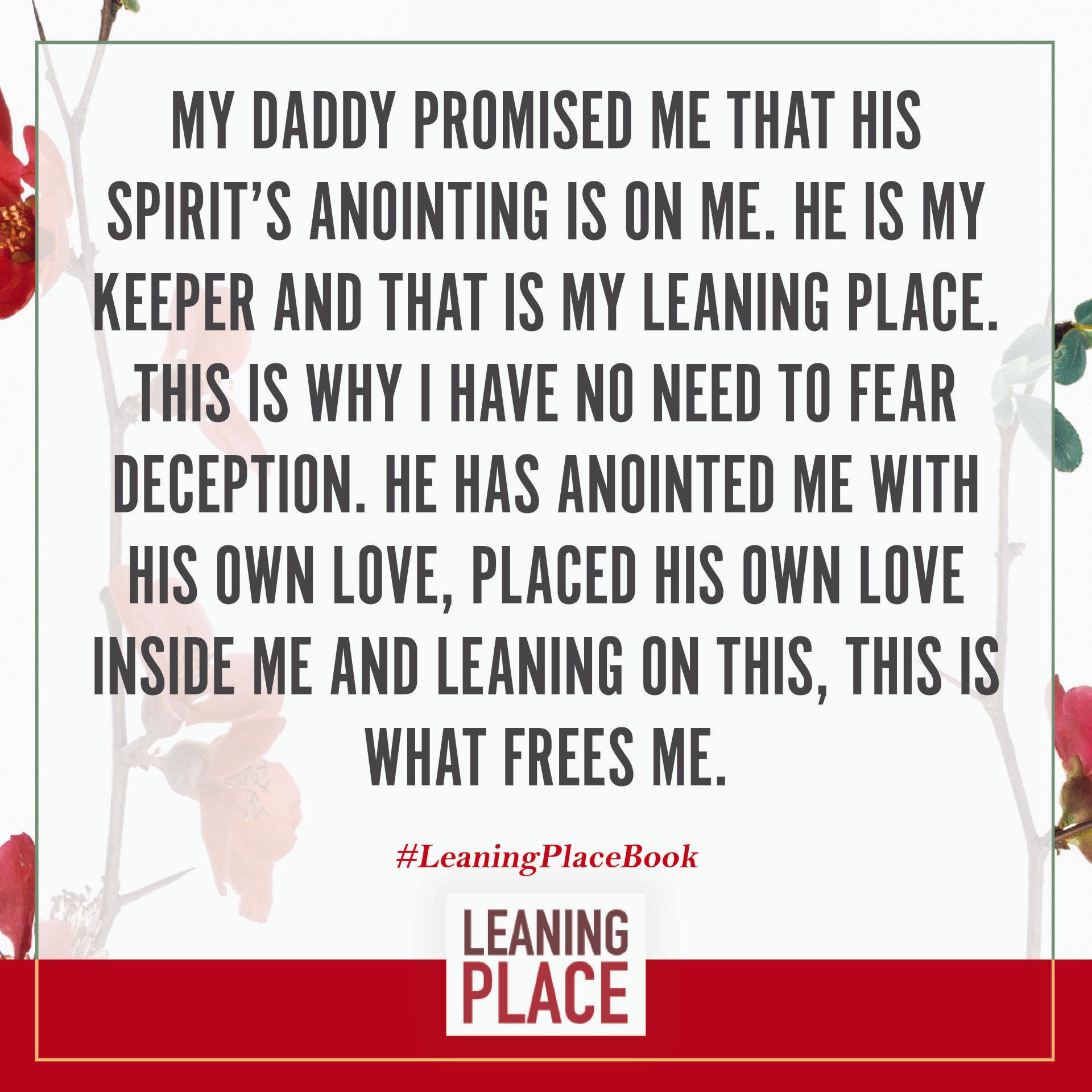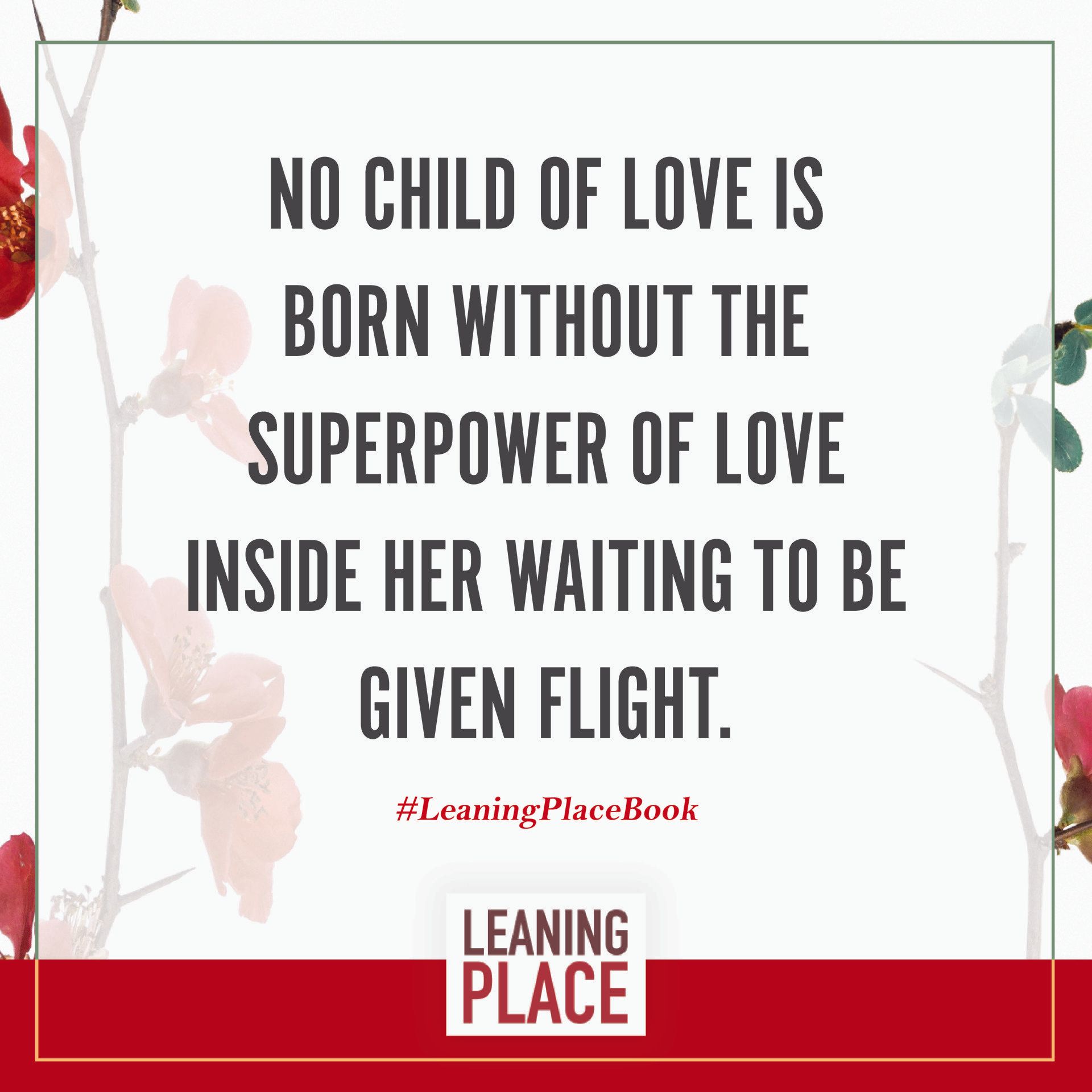 Here's a collection of selected pull quotes from the Leaning Place Book. Use them to share on your preferred social network. To share, click the quote you like, then at the top right of your screen, select the arrow to share.